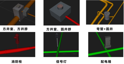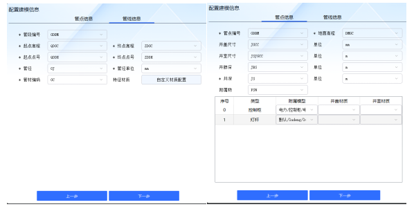 用户仅需根据参数化配置说明,选择相应字段和附属物效果,即可实现管线、连接点、附属物、管井等的自动化建模。