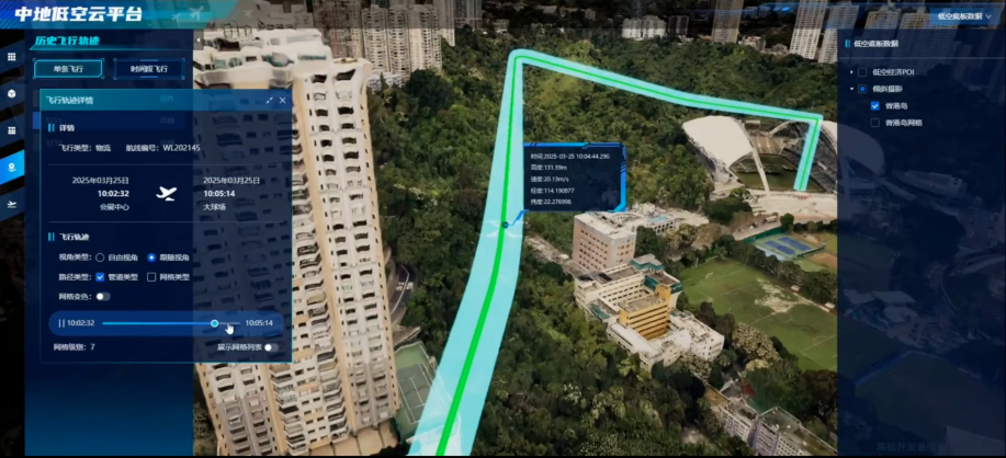 MapGIS通过全空间数据建模与分析技术,构建低空经济数字底座。以全要素数据融合为基础,整合卫星遥感、无人机航拍、地面传感器等多源数据,实现空域要素的数字化表达与动态监控。关键能力包括: 空域规划优化(如多目标多约束航线规划、禁飞区管理)、飞行智能调度(基于实时交通流模拟)、安全保障预警(如碰撞检测、气象风险分析),提升了低空空域的运营效率与安全性,支撑城市物流、应急救援等核心业务。
