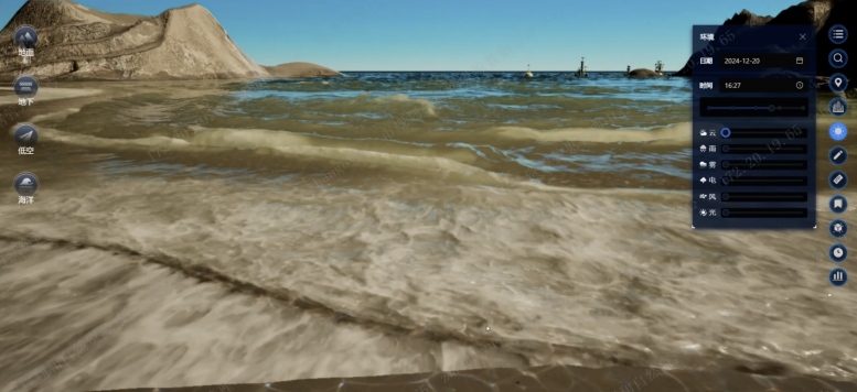 MapGIS深度融合海洋监测、地形、洋流等多源数据,构建一体化管理体系,提升数据服务能力。通过粒子动效等对海流预报等进行动态可视化渲染,直观展现海洋动力环境变化,辅助宏观决策。其智能分析支撑精细化预报、态势感知与智能决策,服务海洋经济与安全发展;集成生态监测与灾害预警数据,提升生态资源监管保护能力。利用三维海图技术高效构建与逼真展示海底地形,显著提升海图生产与价值,有效服务海洋测绘、港口航道管理等。同时,综合应用地形、流场和生态数据,通过空间分析功能辅助海洋空间规划、渔业评估与环境监测。