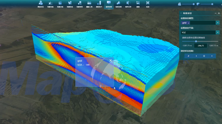 MapGIS通过全空间数据建模技术,整合地上景观、地下管网、地质体等多源数据,实现从二维到三维的无缝转换。在地上景观建模领域,支持规则建模、基于AI的建筑物单体化重建等技术,快速构建城市建筑、道路等要素的三维模型。在地下空间建模方面,提供专业管网建模工具,基于二维管线数据自动生成三维管网模型。针对复杂地质体建模,创新性融合深度学习岩性建模框架,深度挖掘隐含地质特征,有效解决传统隐式建模的过拟合、各向异性表达差等缺陷。