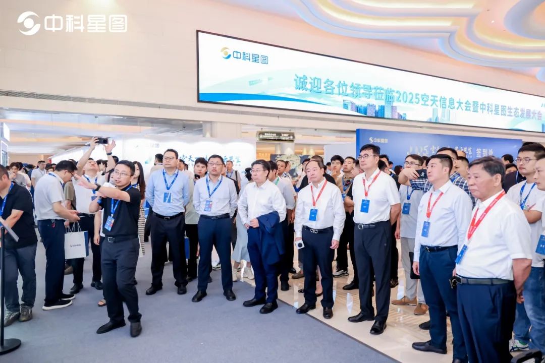 大会以专家巡展拉开帷幕,中国科学院空天信息创新研究院学术院长、研究员吴一戎,中国科学院空天信息创新研究院研究员童庆禧,中国科学院地理科学与资源研究所研究员周成虎,合肥工业大学教授杨善林,北京航空航天大学教授、蓝天实验室主任向锦武,中国科学院原党组成员、秘书长邓麦村,国家航天局对地观测与数据中心总师赵文波,中国科学院合肥物质科学研究院院长刘建国,曙光信息产业股份有限公司总裁历军等行业领军专家、业界代表,在中科星图股份有限公司党委书记、总裁邵宗有的陪同与讲解下,深入巡视大会主题展区,了解了商业航天、低空经济等领域的产业化创新成果。