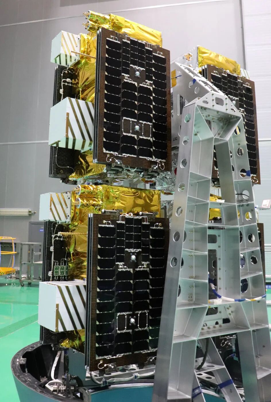 ▲完成组装的“天启星座”29星-32星与火箭支架对接