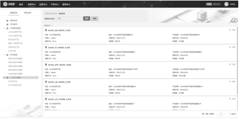GeoCube立方体模型采用全球多级网格对时空数据进行切片,并以瓦片形式进行聚合组织,便于实现分布式并行计算,充分调度计算资源。但是,地球时空大数据,尤其是矢量数据,在空间上存在分布不规律、异质性突出等问题,易造成分布式计算过程中负载失衡问题。为此,OGE从GIS计算的人工智能优化角度出发,通过数据驱动的机器学习方法来刻画数据/算法特征,实现对地理空间域复杂度的合理表征,完成计算强度的自动化预测。比如在矢量空间相交分析中,多边形数量、多边形顶点数量、多边形分布方差等可作为候选特征,据此可以结合多种机器学习特征选择算法和回归模型训练算法,根据精度评价指标从候选特征中选择出最优特征子集,同时得到最优计算强度预测模型。在此基础上,OGE执行引擎通过预测模型感知计算流图中各任务的计算强度,进行计算强度自适应的资源分配,实现任务与资源之间的适配,提升时空分析任务的计算性能。基于上述系统结构设计与关键技术研究,利用微服务技术,设计实现了涵盖元数据、数据、算子、模型等在内的多类型RESTFUL服务;遵循OGC服务标准,设计实现了丰富的客户端应用程序接口(API);构建了计算流程的数据库可用性组(DAG)表达结构,无缝衔接前端用户代码逻辑与后台计算逻辑。在此基础上,利用主流WEB框架,设计实现了OGE前端,以集成与共享OGE的后端数据资源、算子体系与时空分析能力,如图5所示。